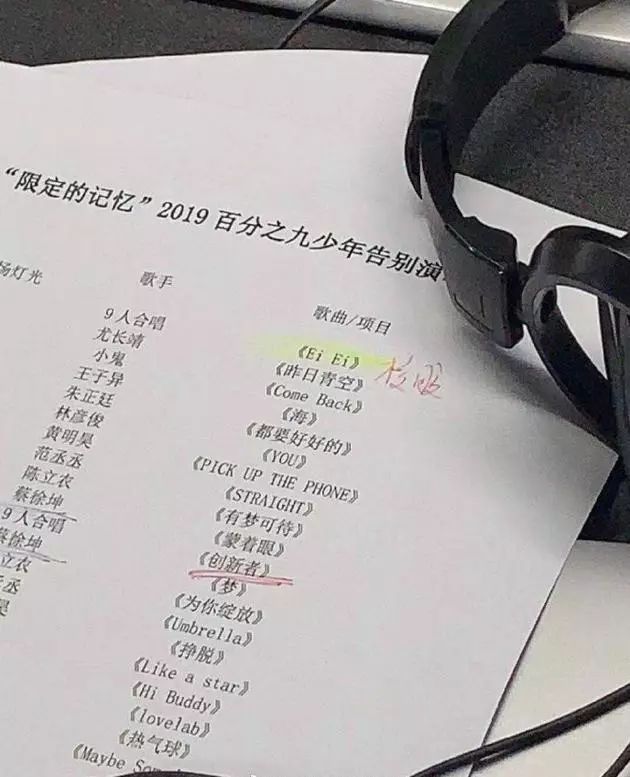 10月11日,网曝NINEPERCENT“限定的记忆”告别演唱会歌单,18首个人solo加3首团歌,歌单涵盖了《EI EI》《创新者》及九名成员出道后的各自的单曲等。新浪娱乐就此求证NINEPERCENT告别演唱会主办方,对方表示:“歌单不属实。”据悉,NINEPERCENT告别演唱会将于10月12日在广州举行,团体综艺《限定的记忆》已于10月10日正式开播。