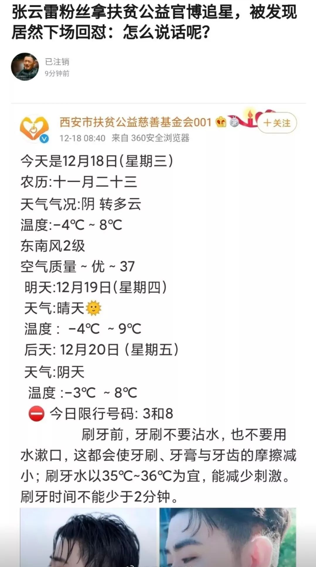 最近有一个名为“西安市扶贫公益基金会”的微博被发现公器私用,发微博竟然配图张云雷的照片。