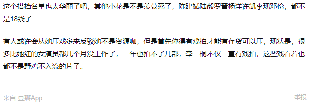 套用豆瓣网友的一句话,是老戏骨与小鲜肉在一起奶李一桐,比她红比她演技好的小花都没戏拍,真不知道多少人要羡慕。