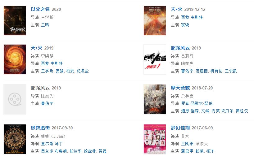 再看看这些她女一的作品里面,合作的都是谁。