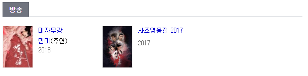 '사조영웅전'. '미자무강'. '해당경우연지투'까지.... 진짜 연기 맛깔나게 잘 하는 배우라 기대 만빵.