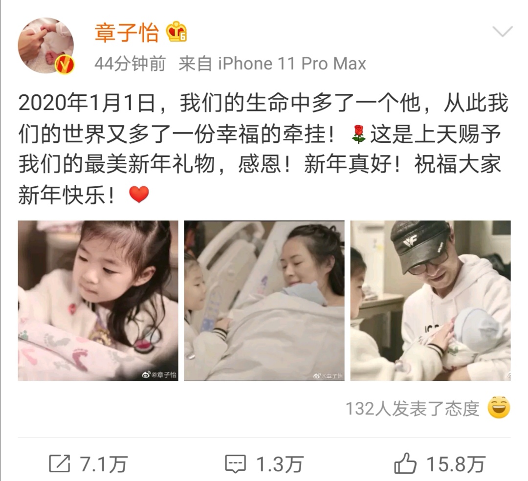 看来章子怡这次产子的保密工作是真的坐得很好,1月1日产子,1月3日发微博大家才知道原来章子怡已经安全“卸货”,恭喜恭喜!