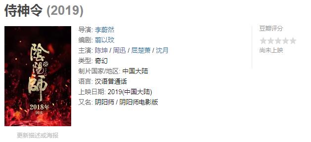 由陈坤、周迅、屈楚萧和沈月主演的《侍神令》也曝光了预告,但没有定档,2019年即将结束,该片可能会在2020年上映,都是讲阴阳师的故事,郭敬明的新片貌似撞题材,其实《侍神令》应该是根据手游《阴阳师》改编,貌似和日本作家的《阴阳师》并不是同款。