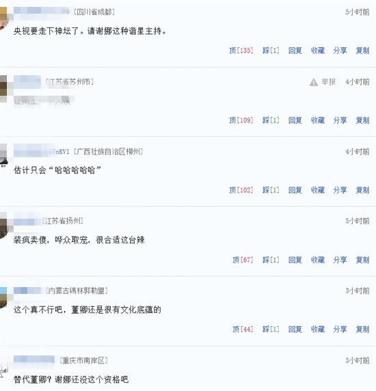 粉丝们看到这样的消息几乎各个都吹爆彩虹屁,但是瓜民们却没有多乐观。谢娜的自侃式的回复给人的感觉也是自信满满:央视特邀主持首期《我要上春晚》,而且她还将独挑大梁,哈哈哈哈哈,她会整期哈哈哈吗?谢娜似乎很享受这种独挑大梁的感觉:没准她也看到网上不少的负评,面对离开何炅什么都不是的质疑声可能也想改变下瓜民的看法。说真的不少的瓜民真没粉丝那么乐观,有人直接就说:央视要走下神坛了。请谢娜这种谐星主持。跟有人说可能要和春晚绝缘了。