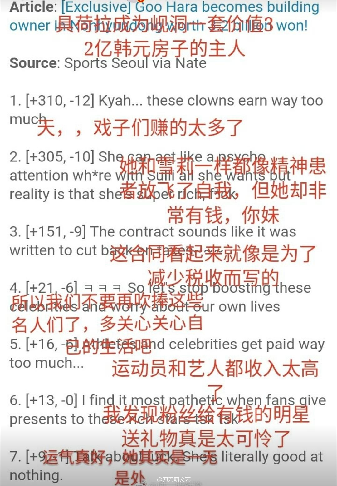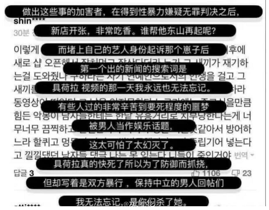 但是,直到今天,具荷拉去世了,还有韩国网民发出这样的恶臭评论。