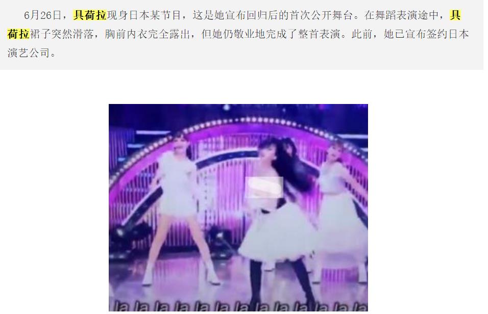 虽然当时具荷拉及时补救,直到表演结束都呈现出敬业的态度,但依旧被猜测“恶意炒作”“走光搏出位”。