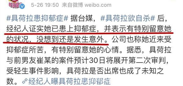 她的经纪人当时向媒体确认,具荷拉的确是患上了抑郁症。