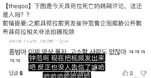 渣男崔钟范不但没有丝毫悔改之意,甚至在具荷拉去世之后,被发现曾点赞网暴具荷拉的恶评。