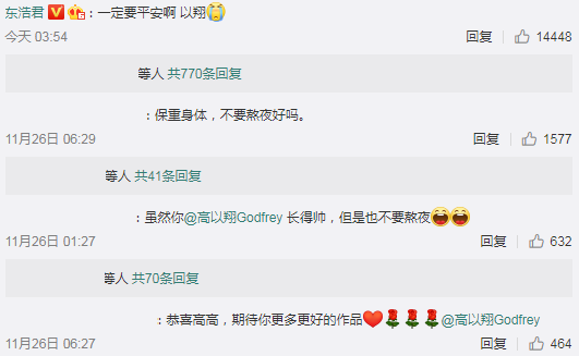 此次高以翔参加节目,据说是在深夜录制,而高以翔本人还曾在昨天凌晨在社交网站上发文,很多粉丝都希望其不要熬夜,要保重身体。当然,还有不少网友调侃高以翔虽然你很帅,但也要注意身体。