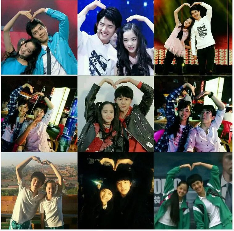 跟欧阳娜娜一起拍了《北京爱情故事》的刘昊然,是她的初代CP,光是两人的比心照都能拼出个九宫格。