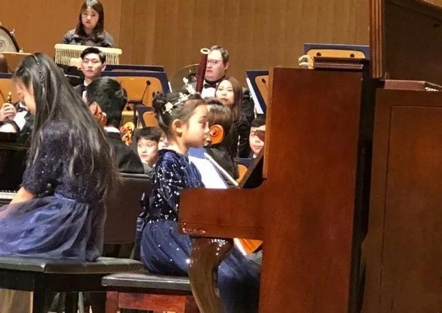 也许小孩子就是活在当下的,甜馨登台演奏,全神贯注,一点儿也不怯场。