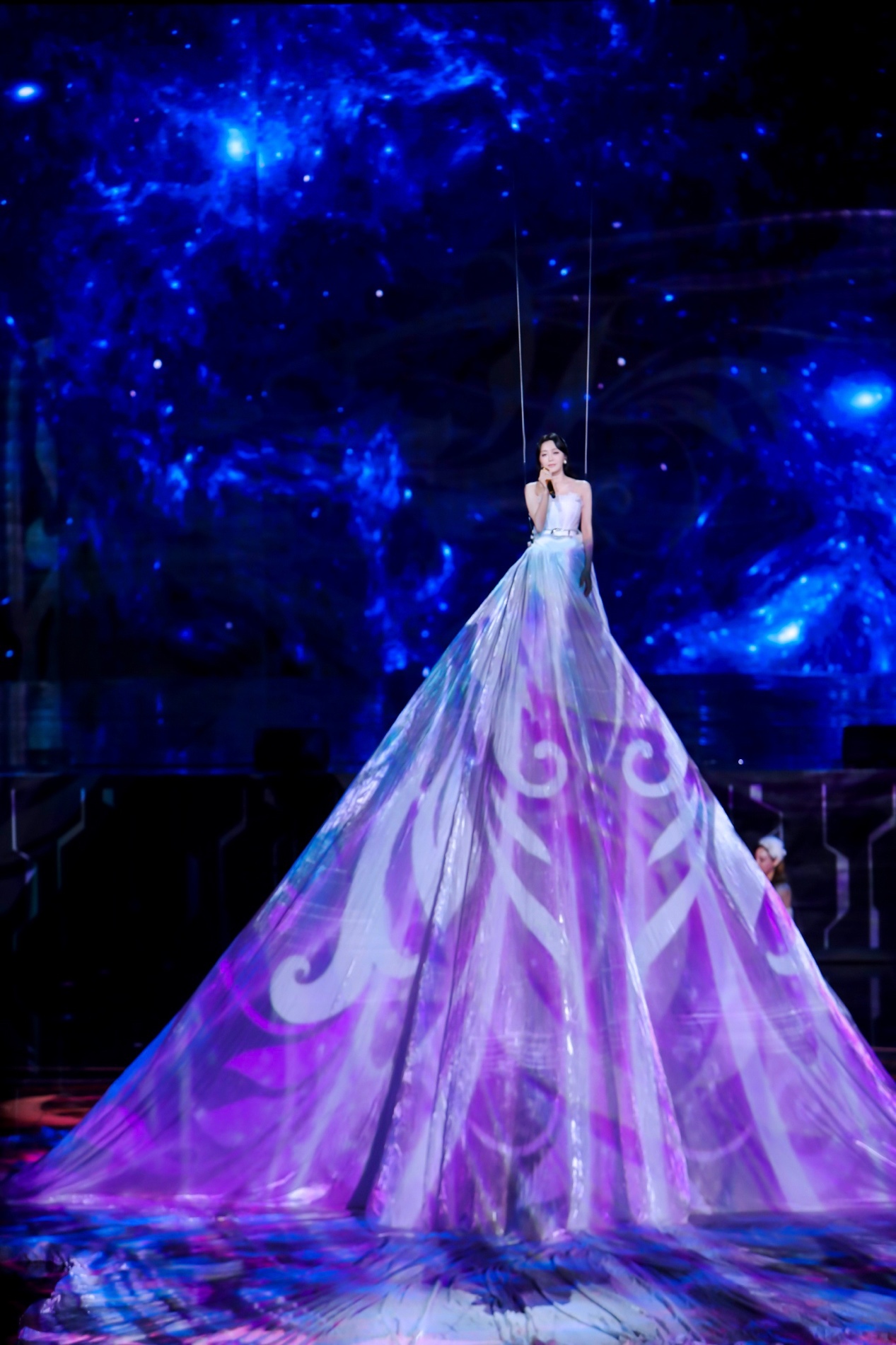 11月10日晚,演员秦岚亮相双十一晚会,首次吊威亚高空演唱歌曲《逆流而上的你》。一袭白色拖地纱裙温柔知性,钻石蓝睫毛眼妆与闪耀耳饰相呼应,精致动人,在现场舞美的投影灯光技术下,秦岚的白色拖地纱裙更显梦幻飘逸,仙气十足。当缓缓升起的舞台设计与灯光投影相结合,科技美学与温柔歌声相映成趣,秦岚的梦幻长裙美轮美奂。现场,秦岚演唱的歌曲《逆流而上的你》,给所有身处逆境中的人们传递温暖和力量。 据悉,大型年代剧《传家》正在紧张拍摄中。秦岚在其中扮演端庄大方深明大义的易家长女易钟灵。此外,她还有《怪你过分美丽》、《人民的财产》等多部优秀作品待播。期待秦岚能带来更多精彩演绎。