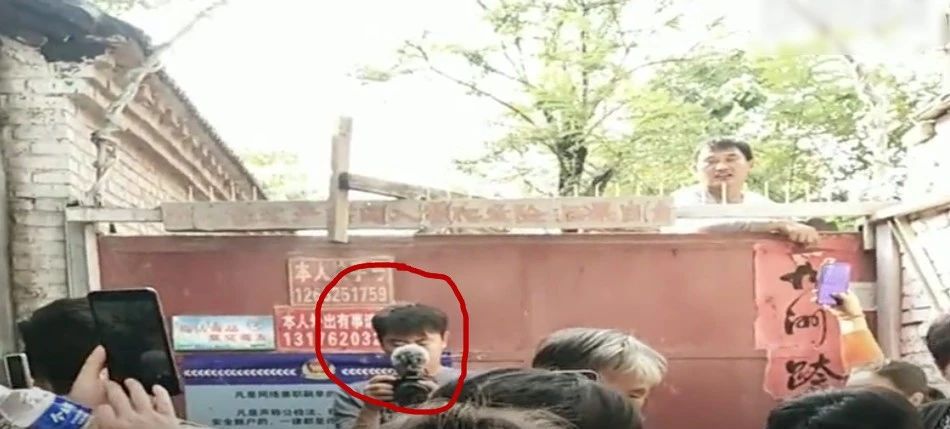 人群里有个小伙子带着很专业的拍摄器材,边拍摄还会停下来检查拍摄的效果,并不像其他村民只是打开手机随便拍。