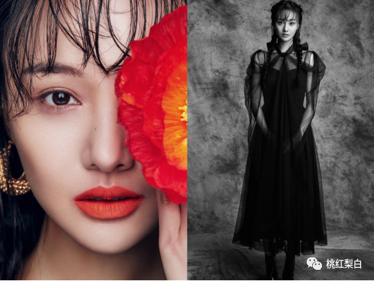 并且和韩国人气女团BP、黄子韬一起,担当创刊号封面人物,足以见得杂志对她的重视。