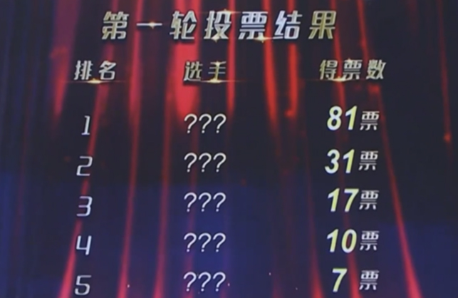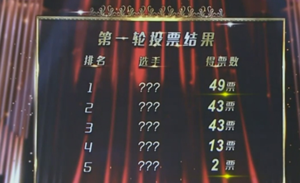 看下图,得票结果并没有名字。但可以看到具体的分数。最高分49票,最低分2票。