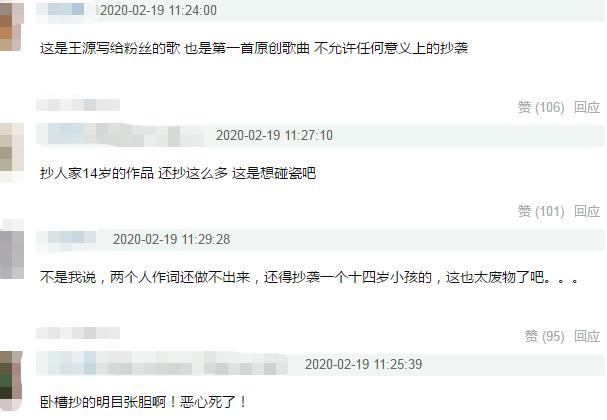 2月19日,有网友发文质疑《奇葩说》选手抄袭了王源14岁首支原创歌曲。
