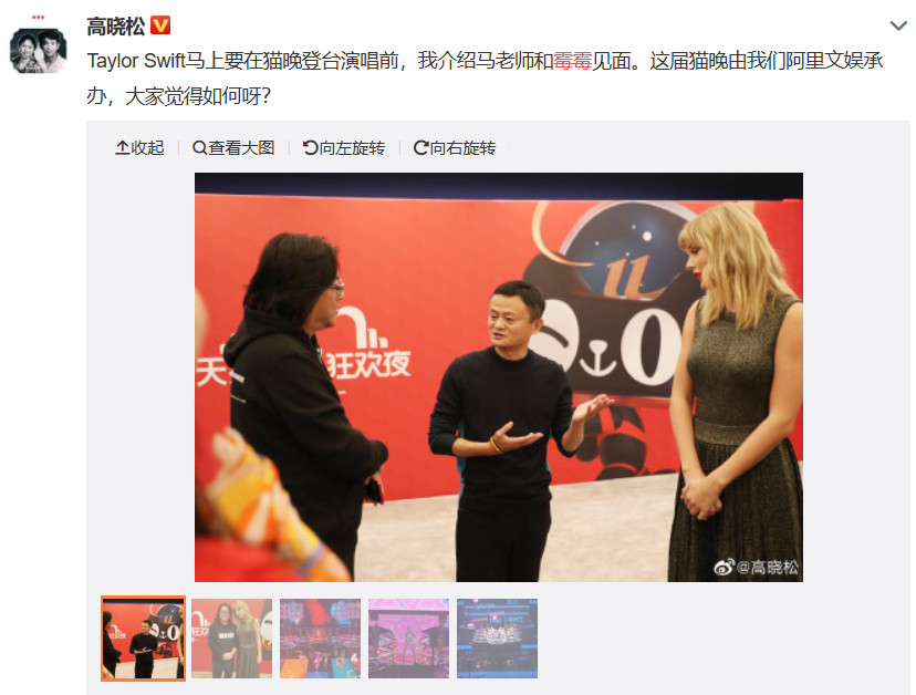 原标题:双十一后台惊喜多,高晓松介绍霉霉跟马云认识,霉霉躺沙发好