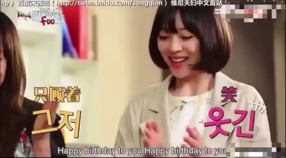 惊喜揭穿的时候,雪莉只顾着傻笑,其他成员一起唱生日歌祝福雪莉。