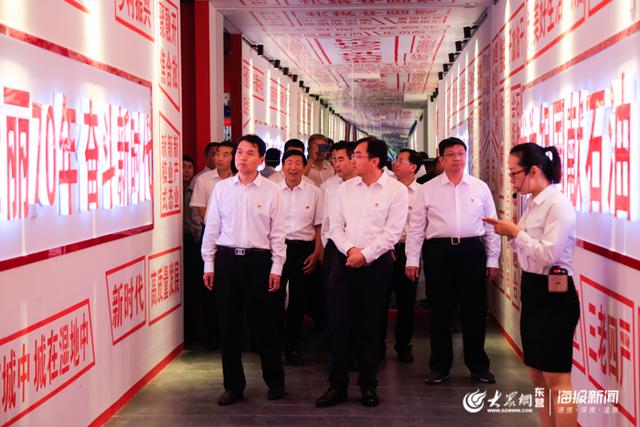 一进门,墙面写满了改革开放以来的大事件,每一件都是东营河口区的重大时间节点,顶部造型呼应“一带一路”政策,配以和平鸽悬挂,传递坚持促进和平、发展与合作的坚定信心和美好愿望。