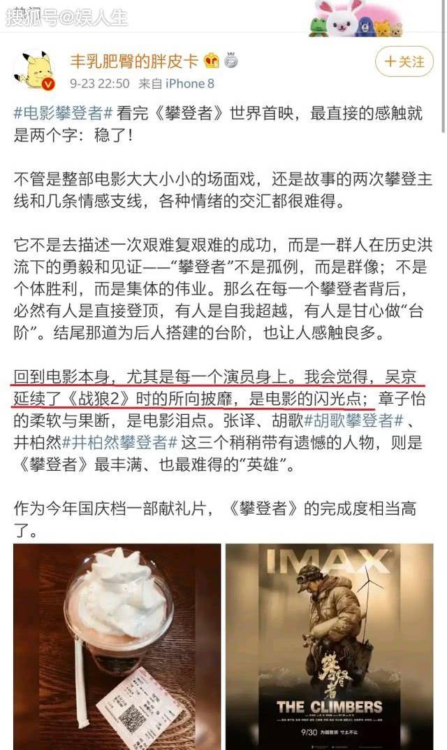 也正是这份坚持和认真,才会有《攀登者》《我和我的祖国》这样的好电影、好角色掉到吴京头上吧。