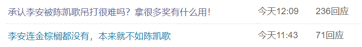 网友们开始争议国内哪位导演更厉害,不少人将李安与陈凯歌比较,列举了不少成绩,甚至还称李安不如陈凯歌。