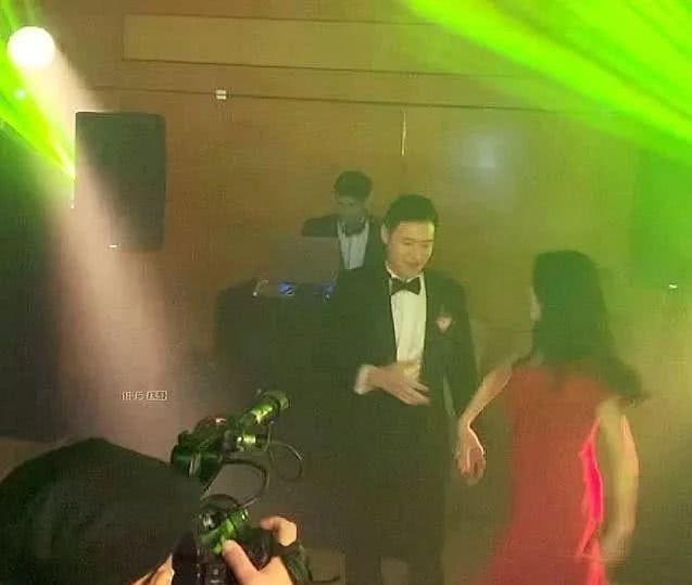 进入婚宴现场,开始婚宴后,杨永晴换上了一袭红色的露肩礼服,在宾客的围观下与新郎翩翩起舞,气氛十分好,好一对才子佳人。