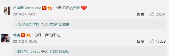 更令人想不到的是,这二人能走到一起最大的媒人不只是韩庚的绅士行为,最重要的是吴京在中间的撮合。卢靖姗在吴京的电影《战狼2》中走红,说她是"京女孩"绝对没错了。而吴京和韩庚在电影《大话西游3》中合作成为了朋友。作为中间人的吴京,在这两人公布恋情时也收到了谢意呢。
