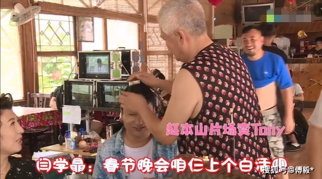 可能是因为衣服太喜感,闫学晶看着赵本山还笑了起来。要说赵本山也是非常有趣,他穿了一件无袖的奶奶衫,从背影来看甚至不像老大爷。不过,赵本山似乎并未觉得不妥,依旧在认真地为演员弄发型,相当认真。