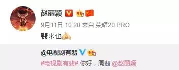 而赵丽颖和王一博在个人社交平台为新剧宣传,互相用剧中角色的口吻互动,颇有几分江湖侠气,“翡来也”、“允在此”,看到这两句“古风表白”,怕是隔着屏幕也能感受到空气里爱情的味道。