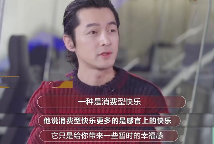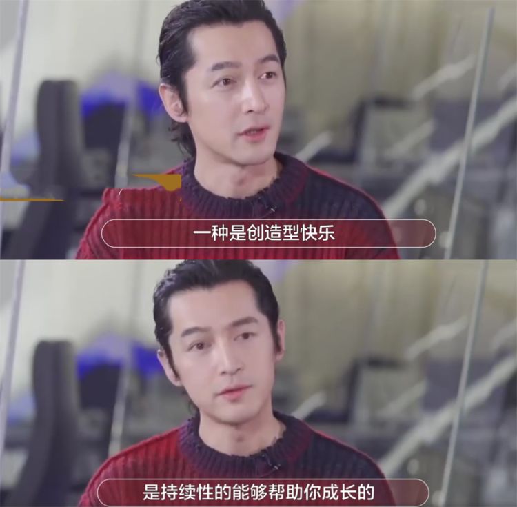 在近日,胡歌接受采访时,谈到了演员的瓶颈期,怎样进一步突破时,胡歌表示,自己听到有人说过,快乐分为两种,一种是消费型的,一种是创造型的。消费型的可能只会带来一时的幸福感,只有创造型的才是持久的,而且能够帮助人成长的。