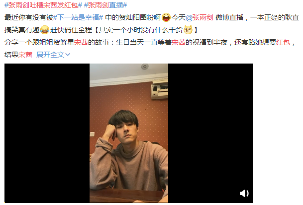 昨天张雨剑在直播中谈到他生日宋茜发红包的问题,让不少网友表示“宋老师在线教做人”。