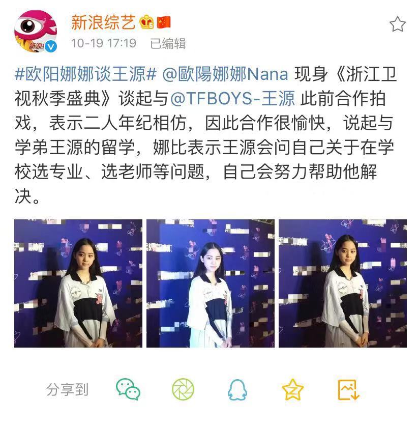 原标题:欧阳娜娜谈到王源,称合作很愉快,会努力帮助他解决选学校等