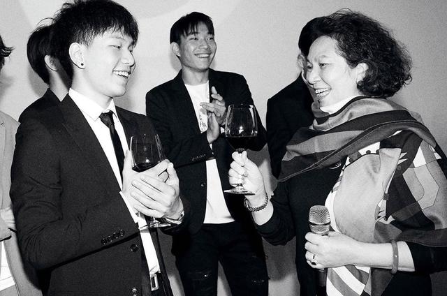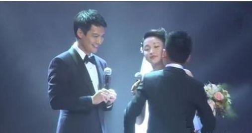 奶奶一手拿着话筒,一手举着酒杯祝福孙子,祖孙二人都洋溢着幸福的笑容。据说陈尊佑从小就和奶奶一起生活,所以感情自然是很深的。
