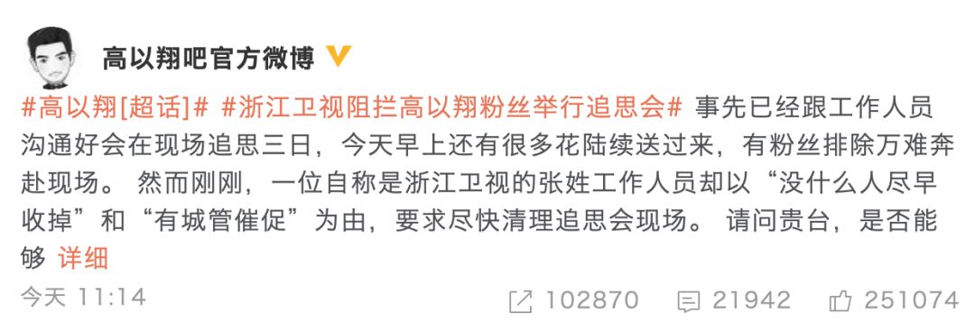 14、高以翔追思会遭浙江卫视阻拦 粉丝怒怼:不会让步