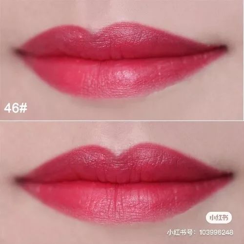 这支的颜色相对于上面那支#46就是很正的玫红,因为不带荧光还稍微掺点蓝调,所以我等黄皮也是可以驾驭的,涂上以后自带万般风情,走起路来都带风。