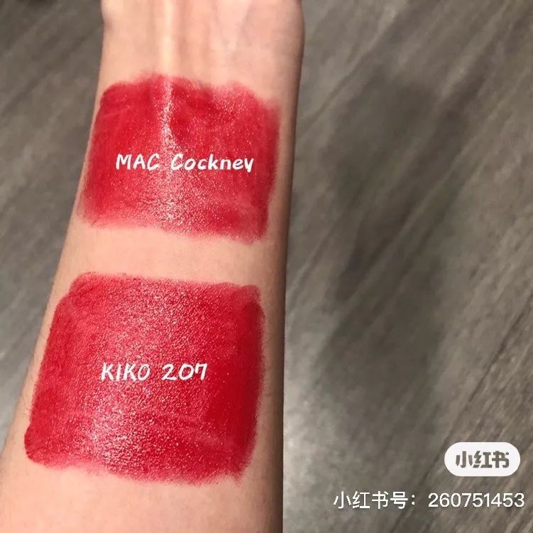Kiko#207也算是#Cockney的平价替代,几乎没啥区别,厚涂也是很好看的草莓红。