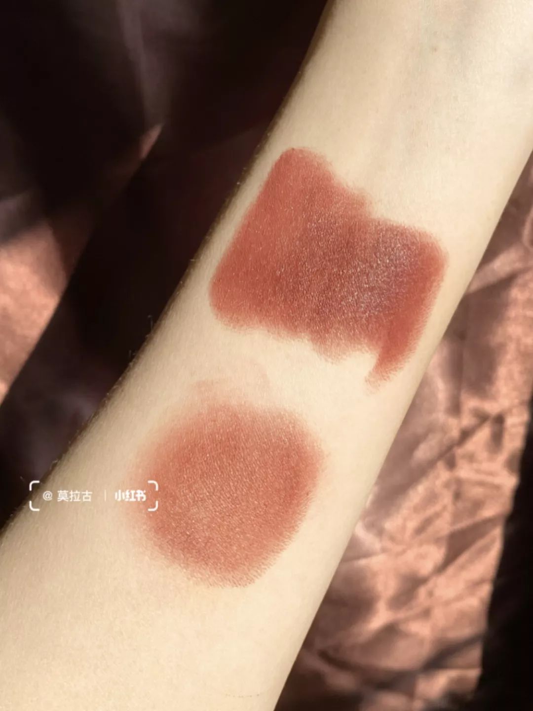 它的质地也是滋润那一挂的,显色度和延展性都很优秀,不过就是这个天大风吹过来,有点粘头发。