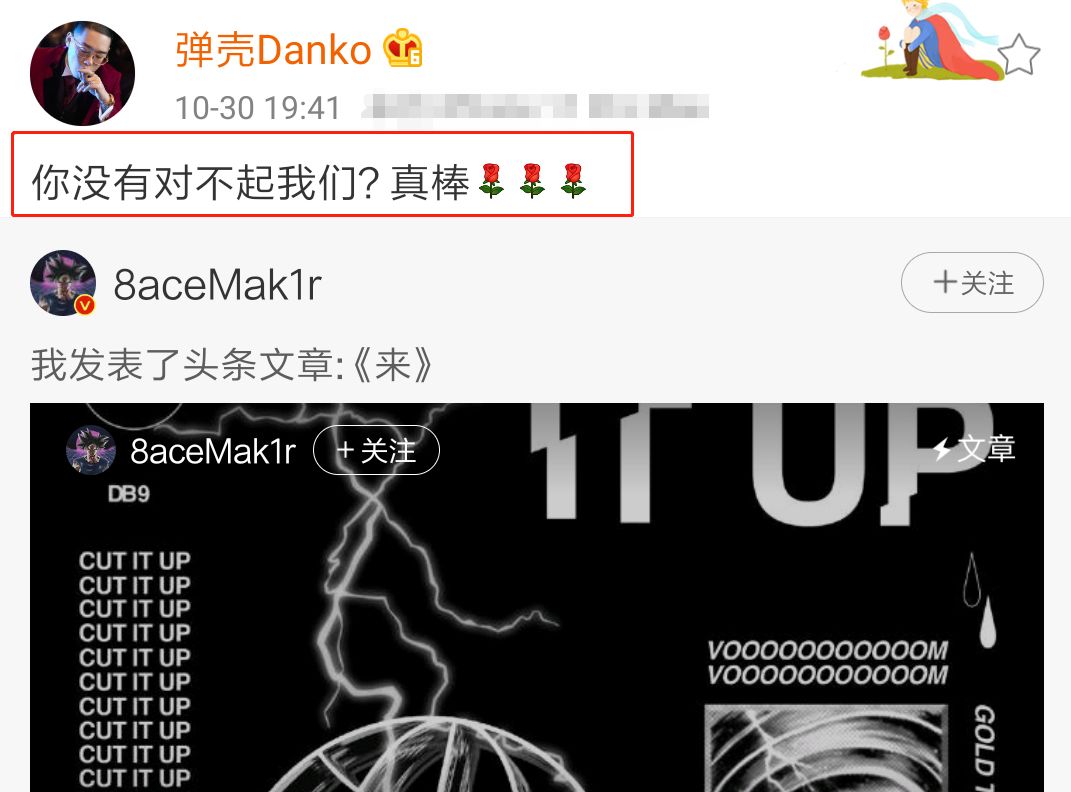 在PG One二次道歉后,小8本以为他会消停好好做音乐,谁知道直接将自己妖魔化,拉着同行来“挡枪”找理由开脱,这样的手段矫情低级又好笑。与其像个小丑一样想要黑红一把,即使受尽千夫所指,但是还是不知反省,让小8感到无语。