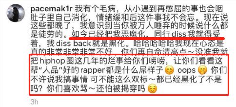 直到今天早上,PG one表示自己已经“恶魔化”了,要怒揭嘻哈圈的遮羞布,还在评论上diss了同行立人设。