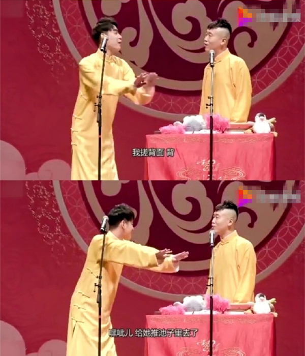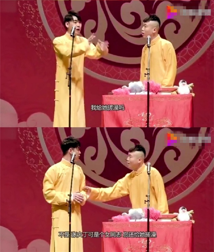 要说这俩人确实配合默契,随后,两人一唱一和,也是由张云雷声称自己给张火丁搓澡,最后把她给推池子里去了。