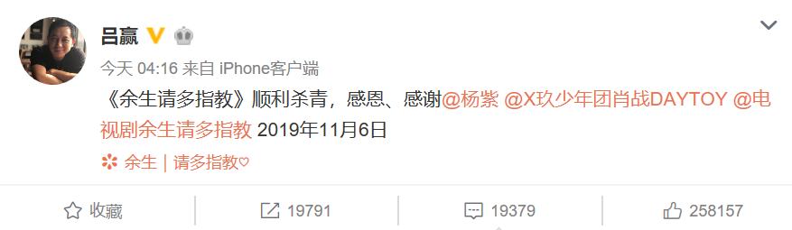 导演也在第一时间发文感谢两位演员,表示电视剧顺利杀青了。杨紫回复导演:“辛苦了”