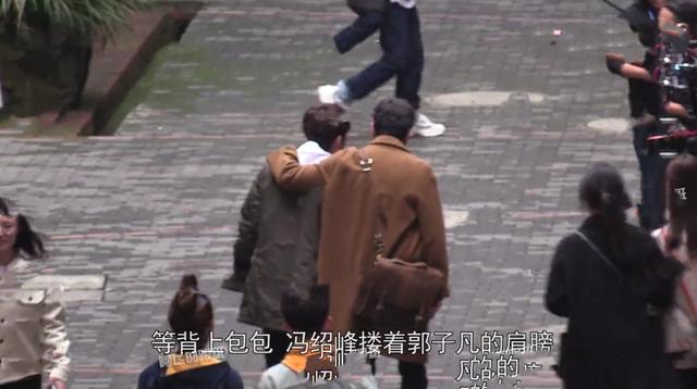 再等到正在开拍时,肩挎上棕色公文包的冯绍峰搂着演员郭子凡的肩膀向前徐徐走去。二人走姿比较奇葩,是半弓着腰,步伐轻轻地向前走,这是什么情况?