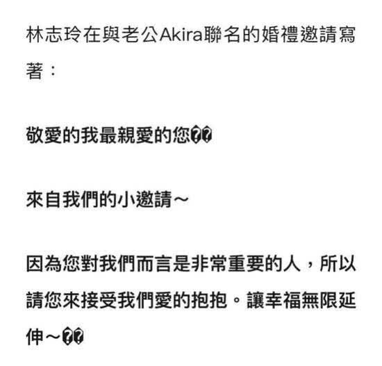 原标题:林志玲婚礼喜帖曝光,11月17日在爸爸家乡办,秘密筹备婚