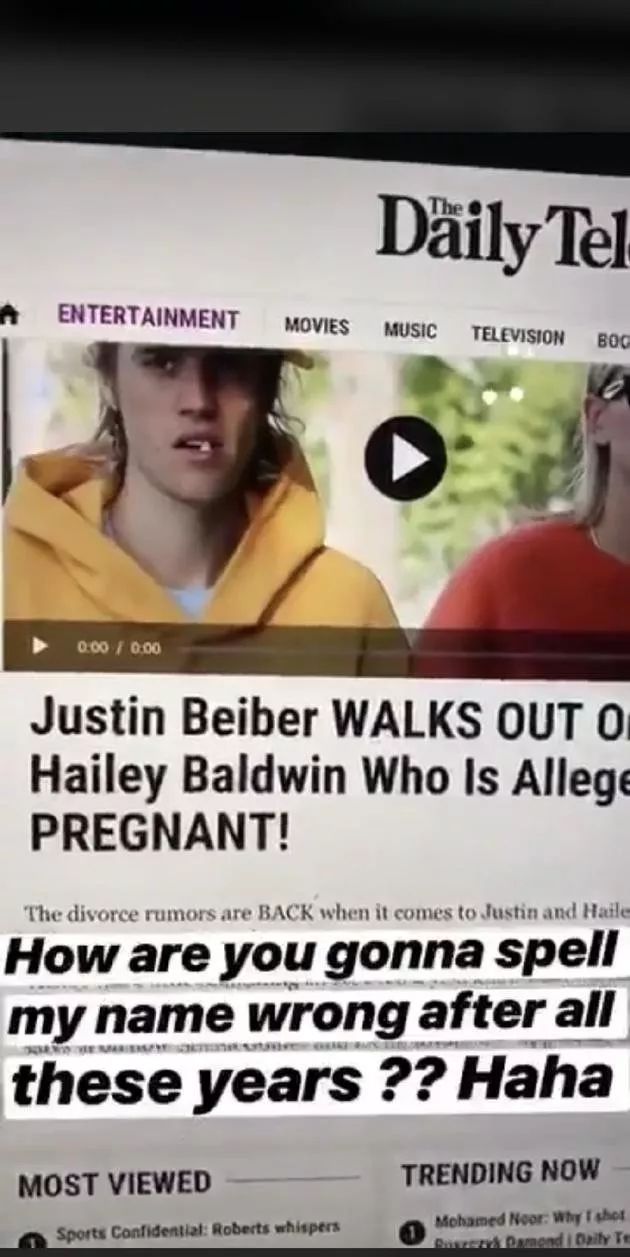 4月底的时候比伯发ins指责媒体打错他的姓,但拍屏里出现了他的网页浏览记录,里面竟然有赛琳娜的演唱会视频