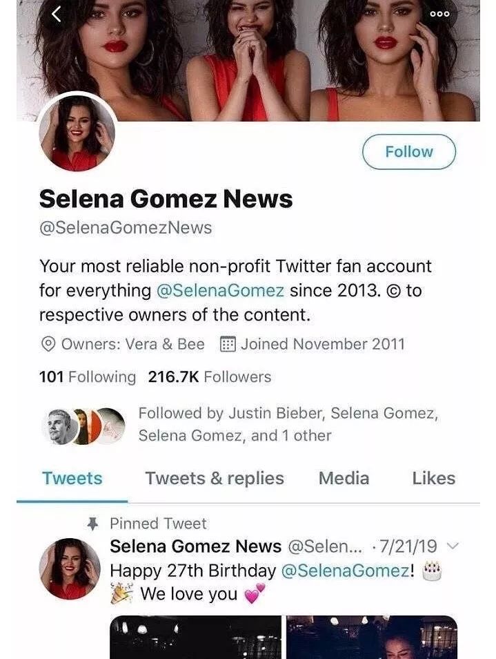 比伯这边也没少不经意间cue到麦麦,9月16号忽然关注了好几个赛琳娜的后援会账号
