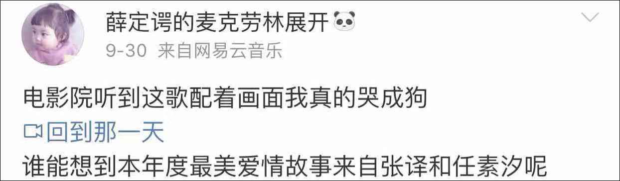 值得一提的是,虽然任素汐以“哭戏”上了热搜榜,但其实电影里,她并没有哭,面对许久未见的恋人,她始终都在笑,而张译全程都戴着口罩,只是,观众都哭了。