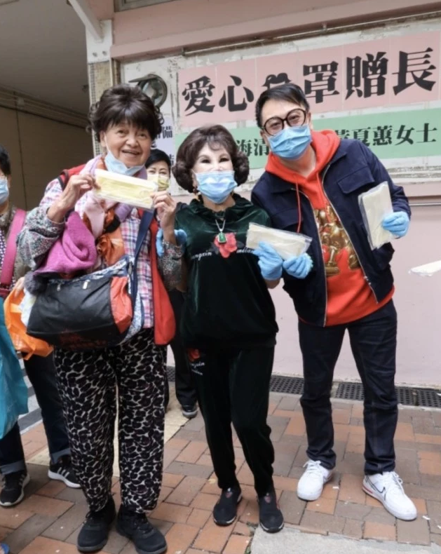 前几日86岁的女星黄夏蕙就自掏腰包买了四万个口罩上街免费发放,当时的周润发的姐姐还前去排队领取了。