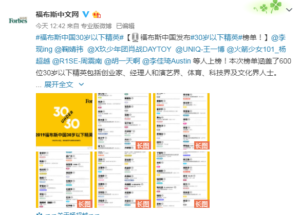 今日中午12:42,福布斯中文网发布了#30岁以下精英#榜单!