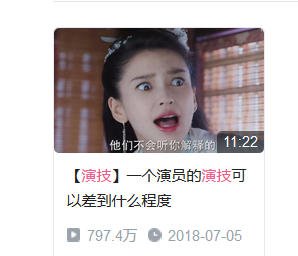 在b站搜索“演技”两个字,播放量最多的,是一段名为“一个演员的演技可以差到什么程度”的视频。