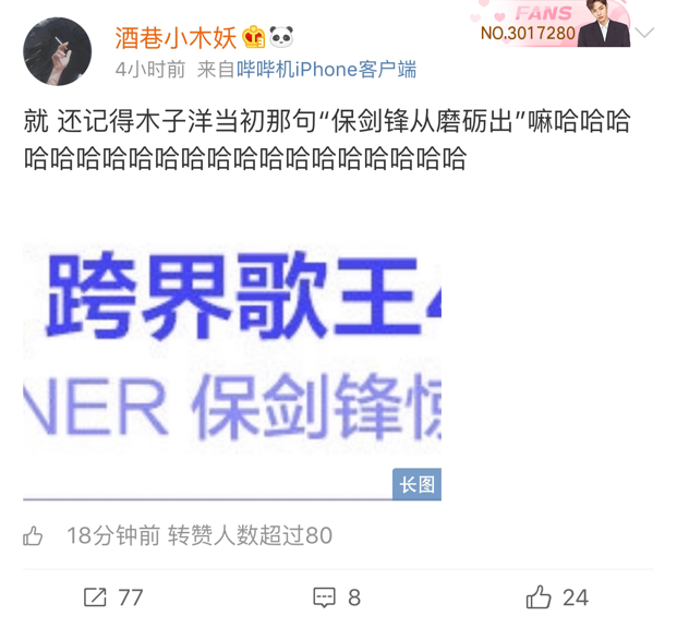 说到保剑锋和ONER的渊源,在得知双方将在《跨界歌王》合作后,有粉丝爆笑指出,谁还记得木子洋去年说的“保剑锋从磨砺出”这个梗,当然,网友的眼睛是雪亮的,真是让人捧腹。